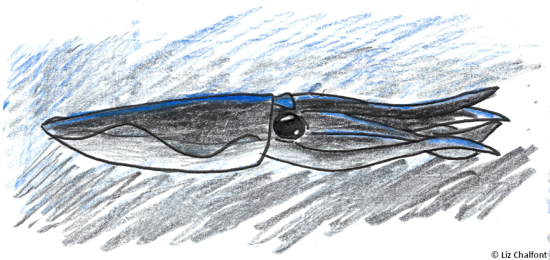 In our studies, Ina has been showing signs of remarkable intelligence. I have continued my observations and am noticing a lot of fascinating details. – He has spiked tentacles like a humboldt squid, but Ina’s talons can retract at will. It’s unclear why this could’ve evolved. – Ina definitely recognizes me now! He shows what I would call excitement when I enter the lab… I’ll admit I’m growing fond of him too. After all, I spend a great deal of my time on this ship with him these days. – His eyes are so big and dark. Sometimes I look into them and wonder what he’s thinking about. – My personal theory is that the squad lives on hydrothermal vents. I know there are some vaguely nearby, so it’s possible, and Ina showed what looked like recognition when I showed him a picture. I’ve also noticed something… troubling, to say the least, going on with the other squids. As I have said, void squids are crepuscular, but in the last few days, they have been exhibiting this behavior less and less. Instead, well… before, they avoided our boat to a mildly concerning degree, but now they circle us regardless of their active hours, black as night. I believe this means they are hunting. I know that human interference often changes animals’ behaviour, but this is still unnerving. It’s probably nothing though. This is a new species, and we know so little about their usual habits! I’m probably just paranoid since Rynn got hurt. After all, what’s the worst that can happen?