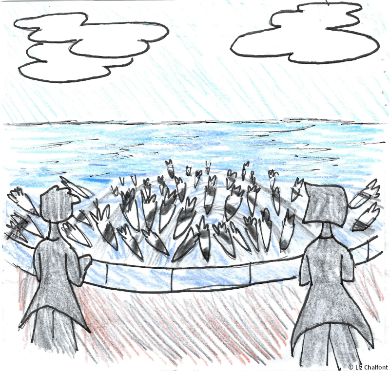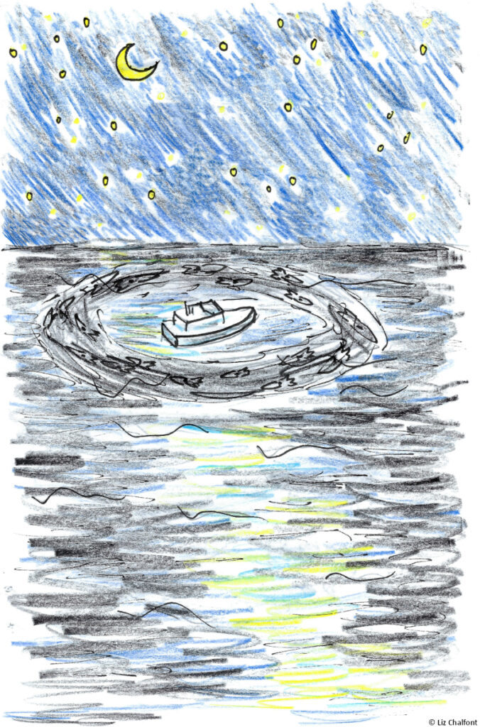 Chris from the sonar department is gone. … That’s it. That’s today’s entry. We’ve searched the whole ship. He simply isn’t here. This isn’t a large boat. There’s nowhere he could be. Everyone is paranoid now, and rightfully so. … Update: We reviewed the security footage. Chris jumped into the water and disappeared. I don’t know why– I can’t imagine he would do that of his own accord, but I watched the video with everyone else and it didn’t look like anything made him do it… I don’t know what’s going on. The squad is coming back to circle us more and more often. We have decided to continue going about our business and Ina is a welcome distraction, but I remain very scared.