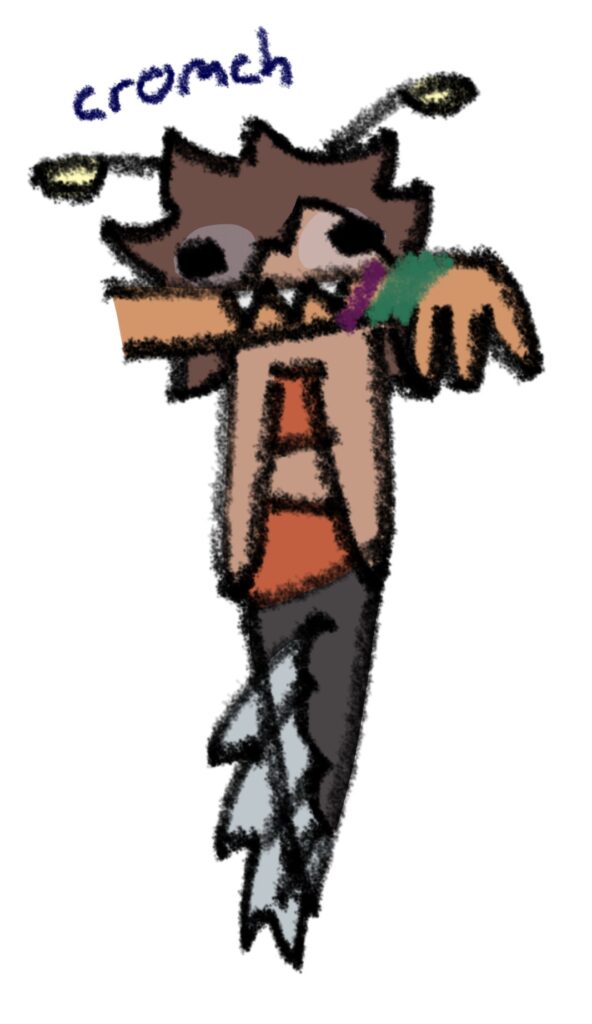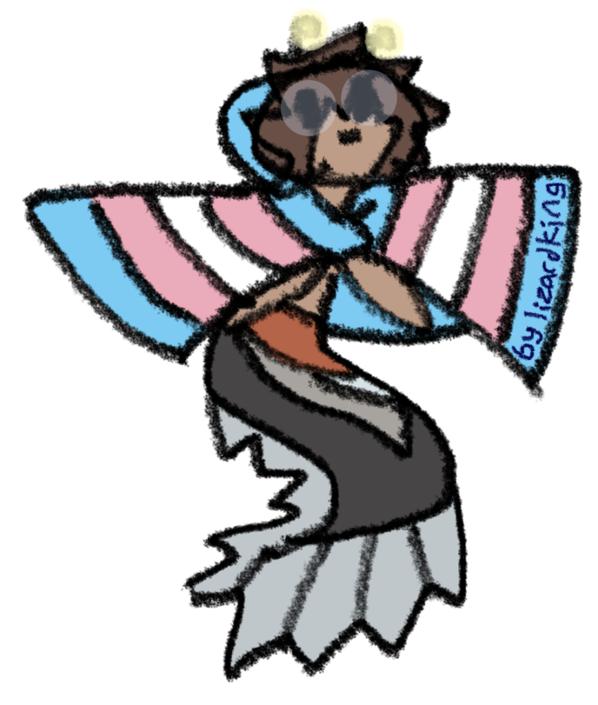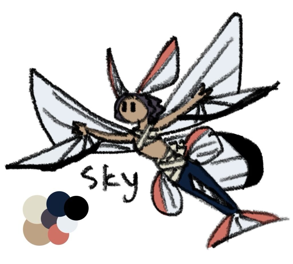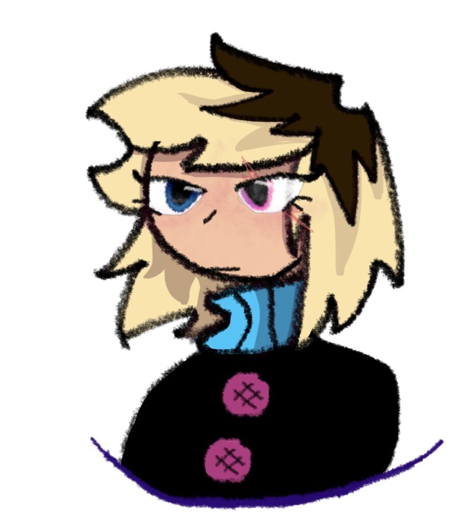 The art quality on this one is very substandard. It’s really just a doodle-y reference so I know what his design is supposed to look like. Also, he’s a human. The drawing of him with a tail is more of a hypothetical.