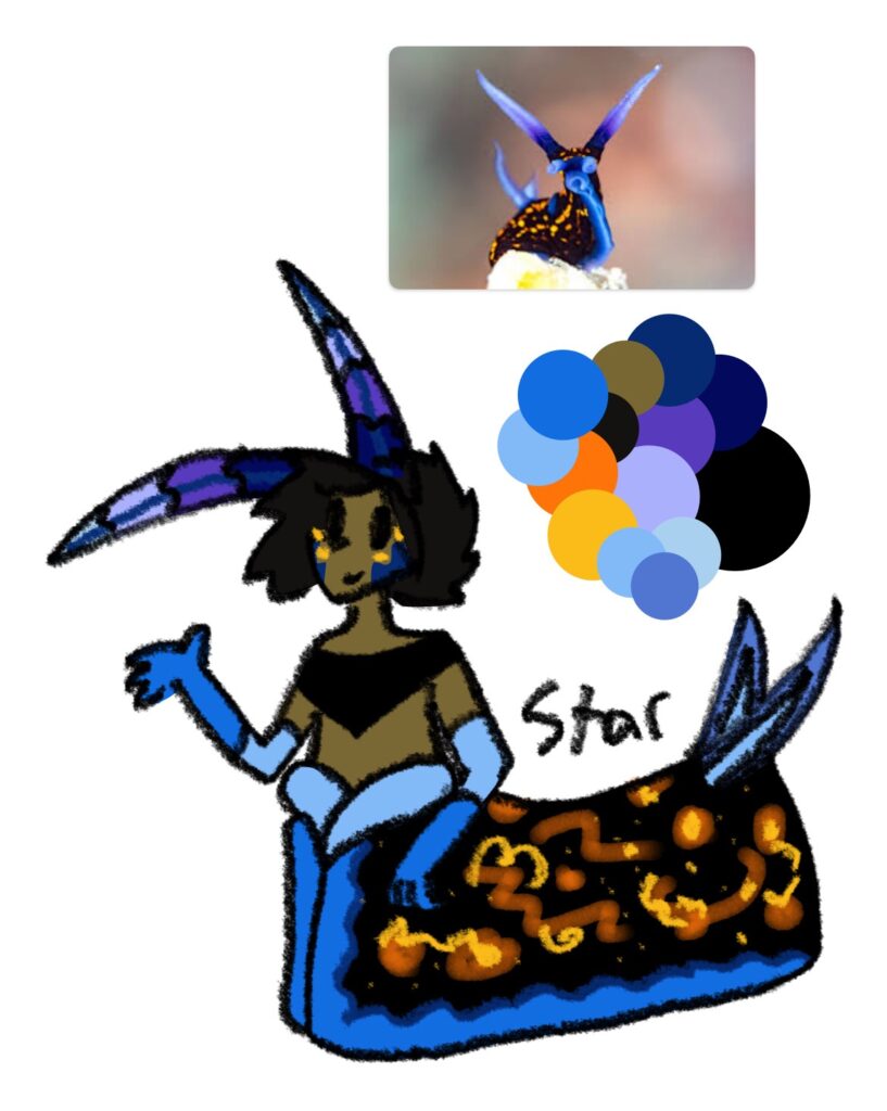 As you can see by my reference images, they’re nudibranchs, which are a criminally underappreciated type of sea slug. Go look them up right now!